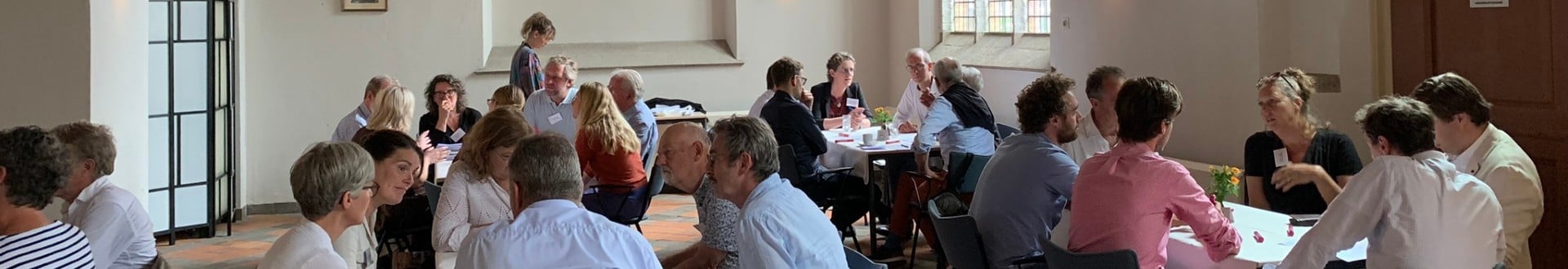 De deelnemers werden uitgenodigd op hun expertise van en vertegenwoordiging vanuit een bepaalde organisatie. Bewust was er gekozen voor deelnemers uit verschillende hoeken: toerisme, overheid, erfgoed, religieus, gebouwbeheer, etc. Hiermee hopend vanuit meerdere perspectieven multidisciplinair aan de tafels de onderwerpen te kunnen behandelen. Het estafettetafelsysteem zorgt ervoor dat achtereenvolgens iedere groep aan iedere tafel zit. Iedere tafel werd begeleid door een moderator. Zij hebben verslag gemaakt van de 5 gesprekken.